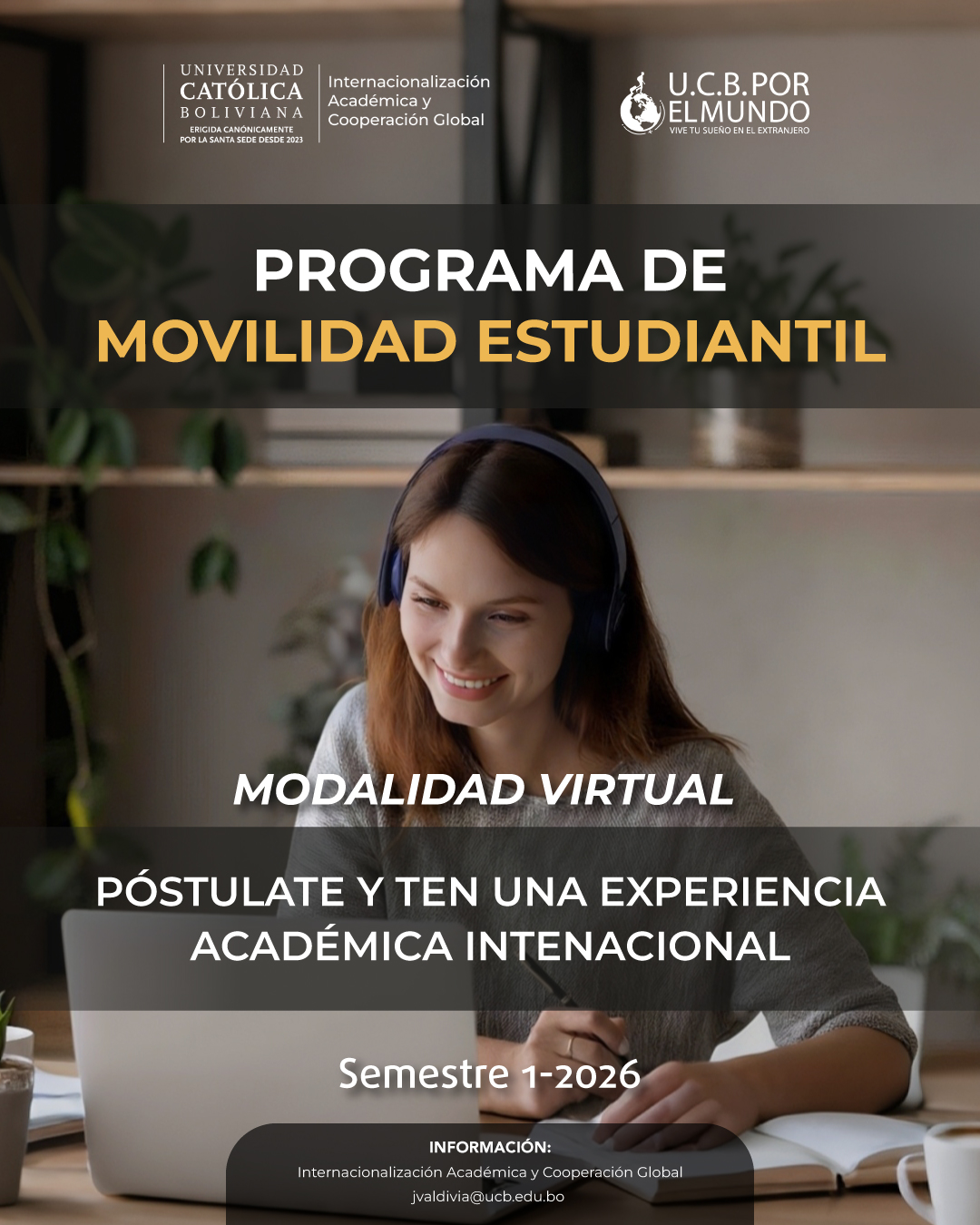🌍 ¡El Programa de Movilidad Virtual Estudiantil UCB por el Mundo abre la convocatoria para el semestre 1-2026! 📚🖥️