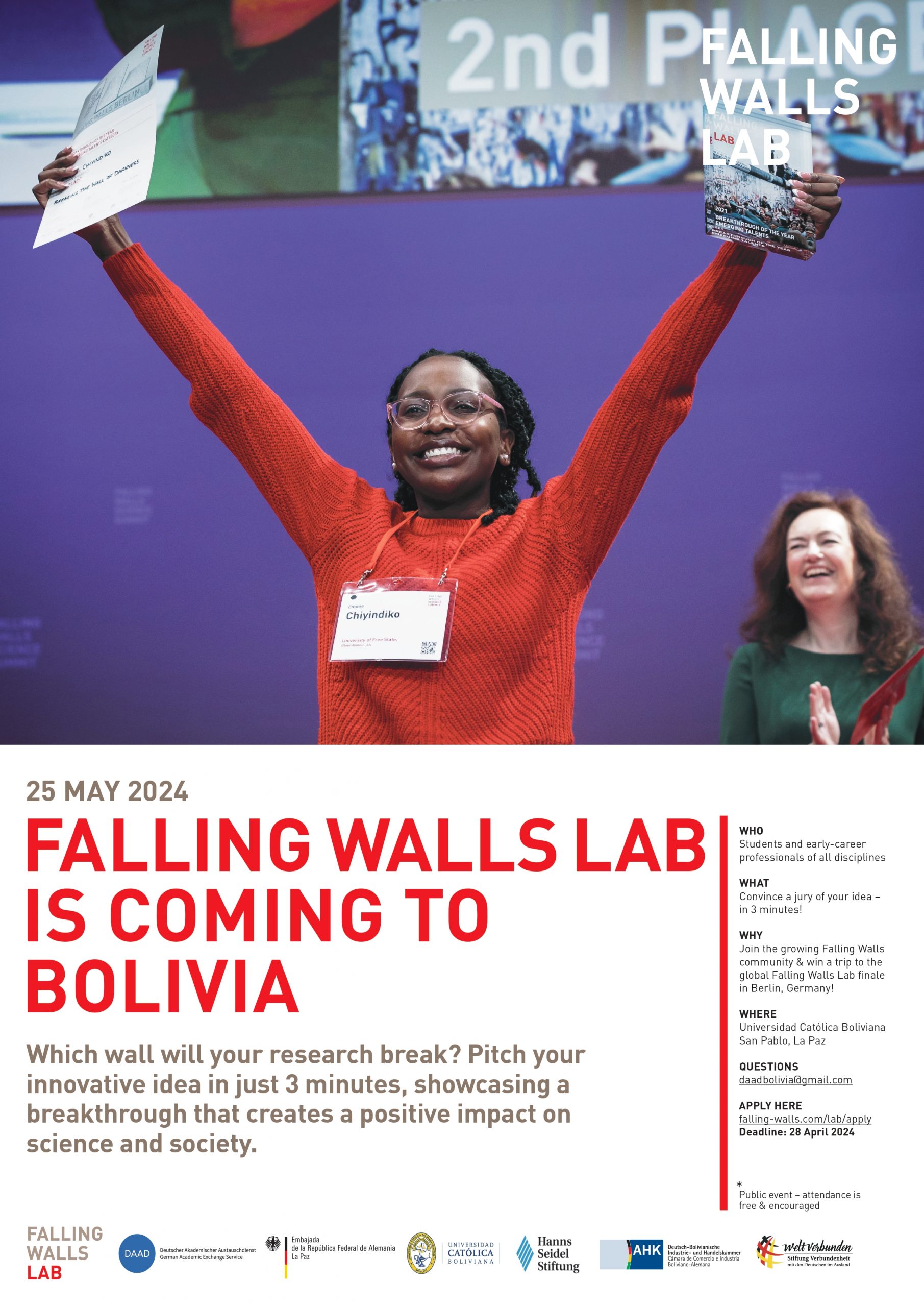 鈩癸笍 Mayor informaci贸n y postulaciones en ingl茅s bajo: https://falling-walls.com/lab/apply/bolivia/