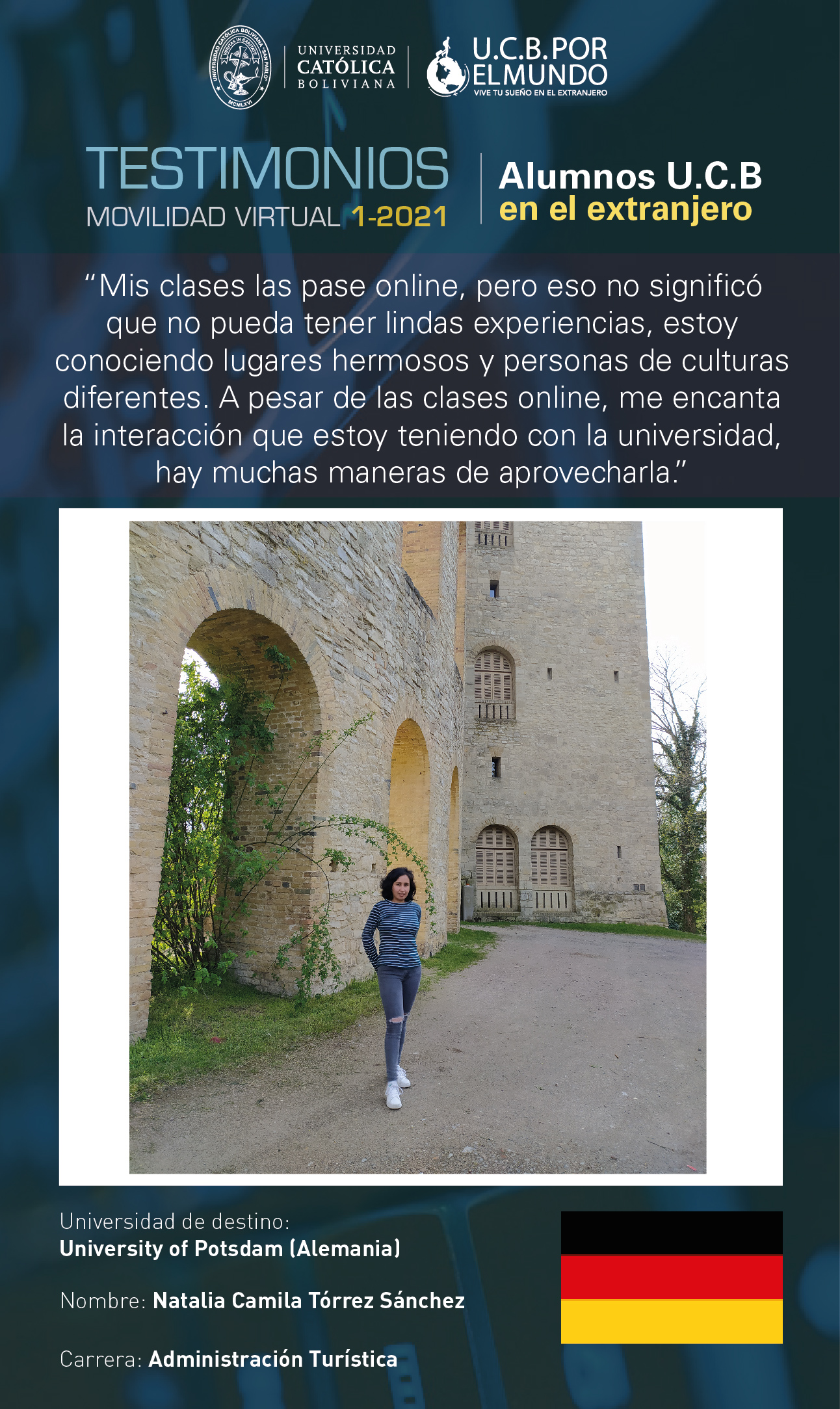 Te invitamos a leer el testimonio de nuestra estudiante que participó en el Programa de Movilidad Estudiantil UCB por el Mundo.