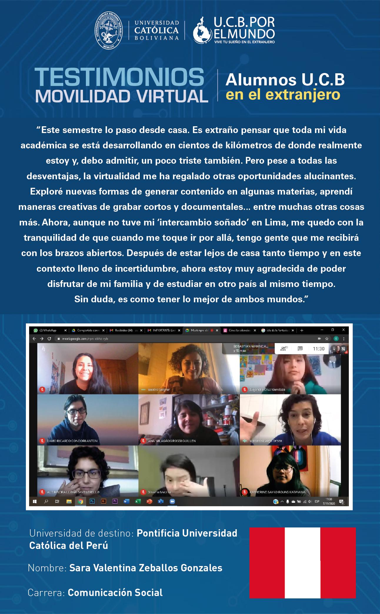 Te invitamos a leer el testimonio de nuestra estudiante que participó en el Programa de Movilidad Virtual Estudiantil UCB por el Mundo.