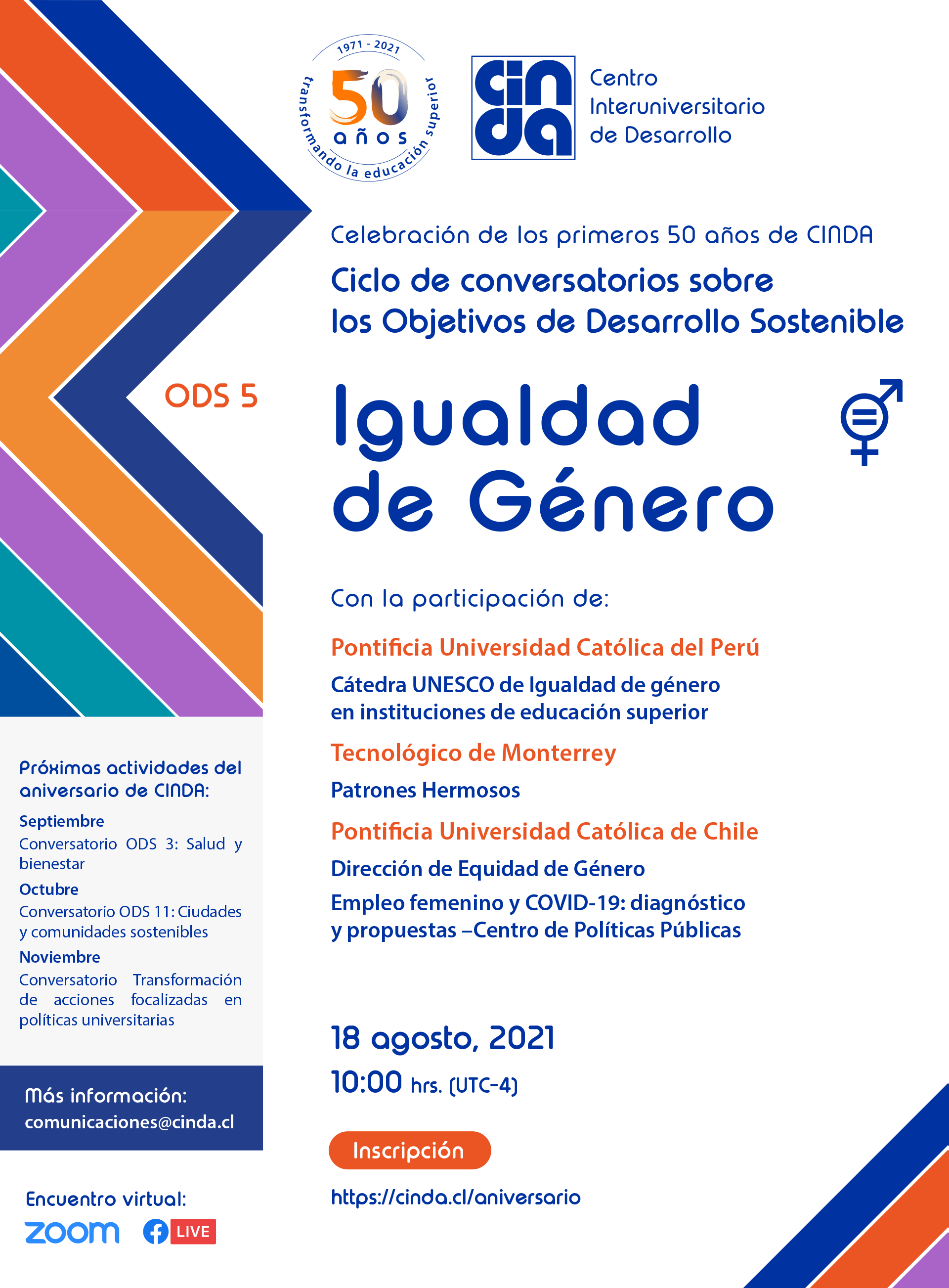 Ciclo de Conversatorios sobre los Objetivos de Desarrollo Sostenible ODS 5 Igualdad de Género Volver atras
