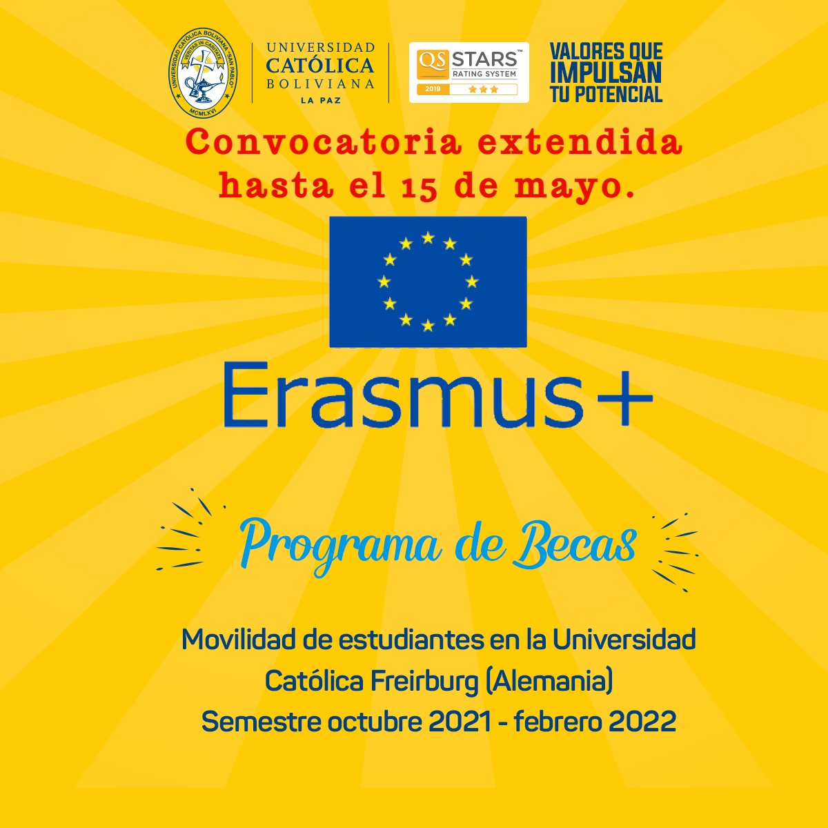 CONVOCATORIA EXTENDIDA HASTA EL 15 DE MAYO para postular al Programa de Becas ERASMUS + para la Movilidad de estudiantes en la Universidad Católica de Friburgo en Alemania.
