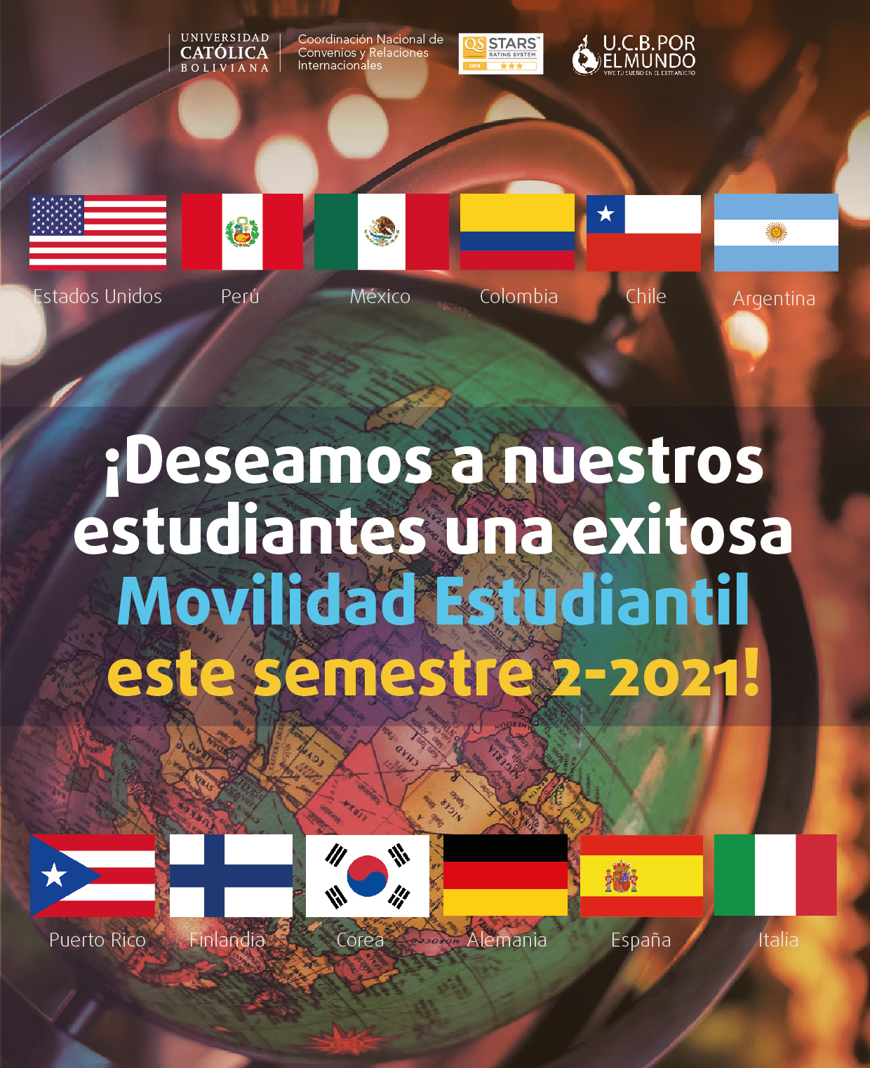 Deseamos a los estudiantes UCB una exitosa movilidad estudiantil este semestre 2-2021.