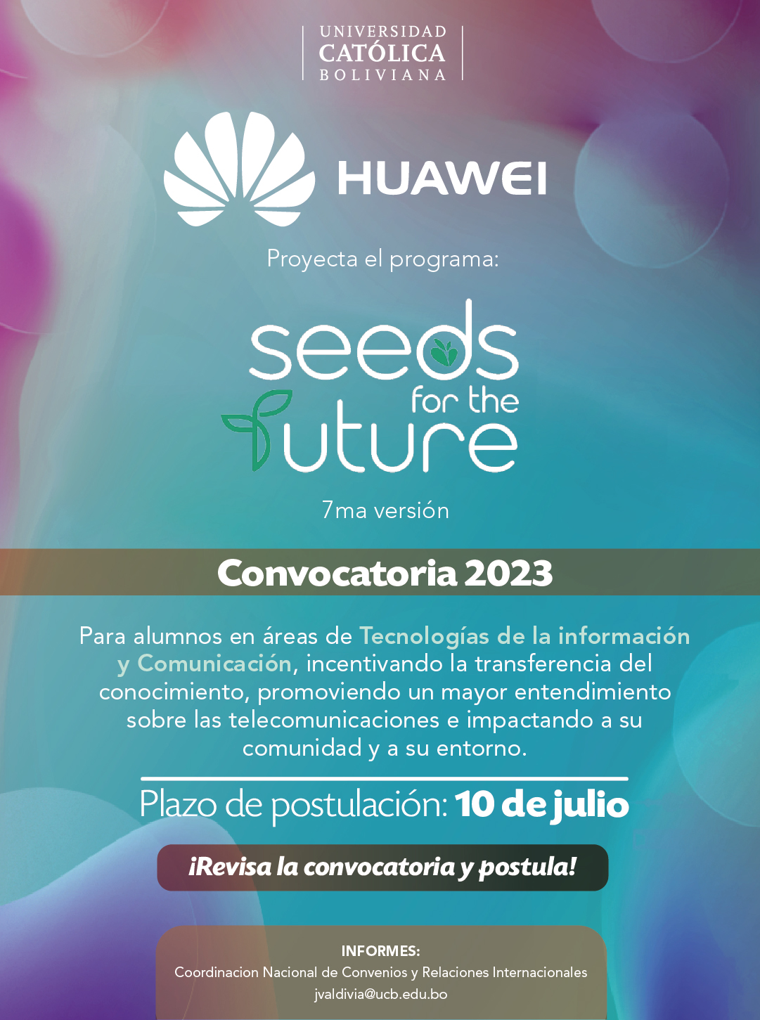 Para más información contacta a jvaldivia@ucb.edu.bo