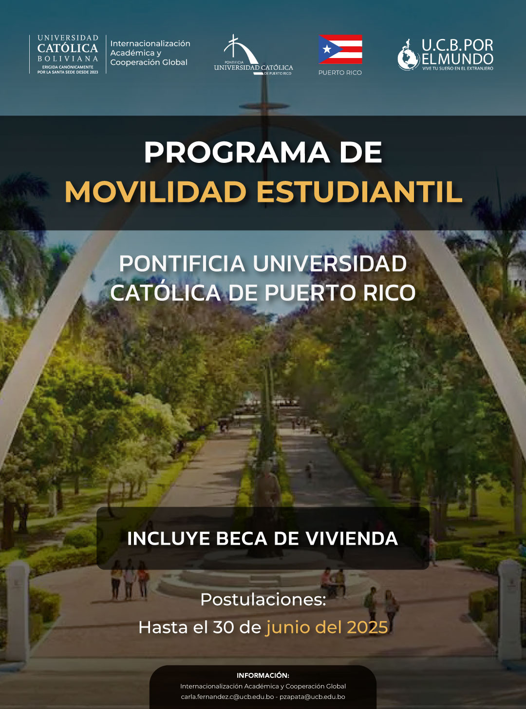 馃實隆La Pontificia Pontifica Universidad Cat贸lica de Puerto Rico ofrece Beca de vivienda disponible para el semestre 2-2025, a trav茅s del Programa de Movilidad Estudiantil UCB por el Mundo!馃實