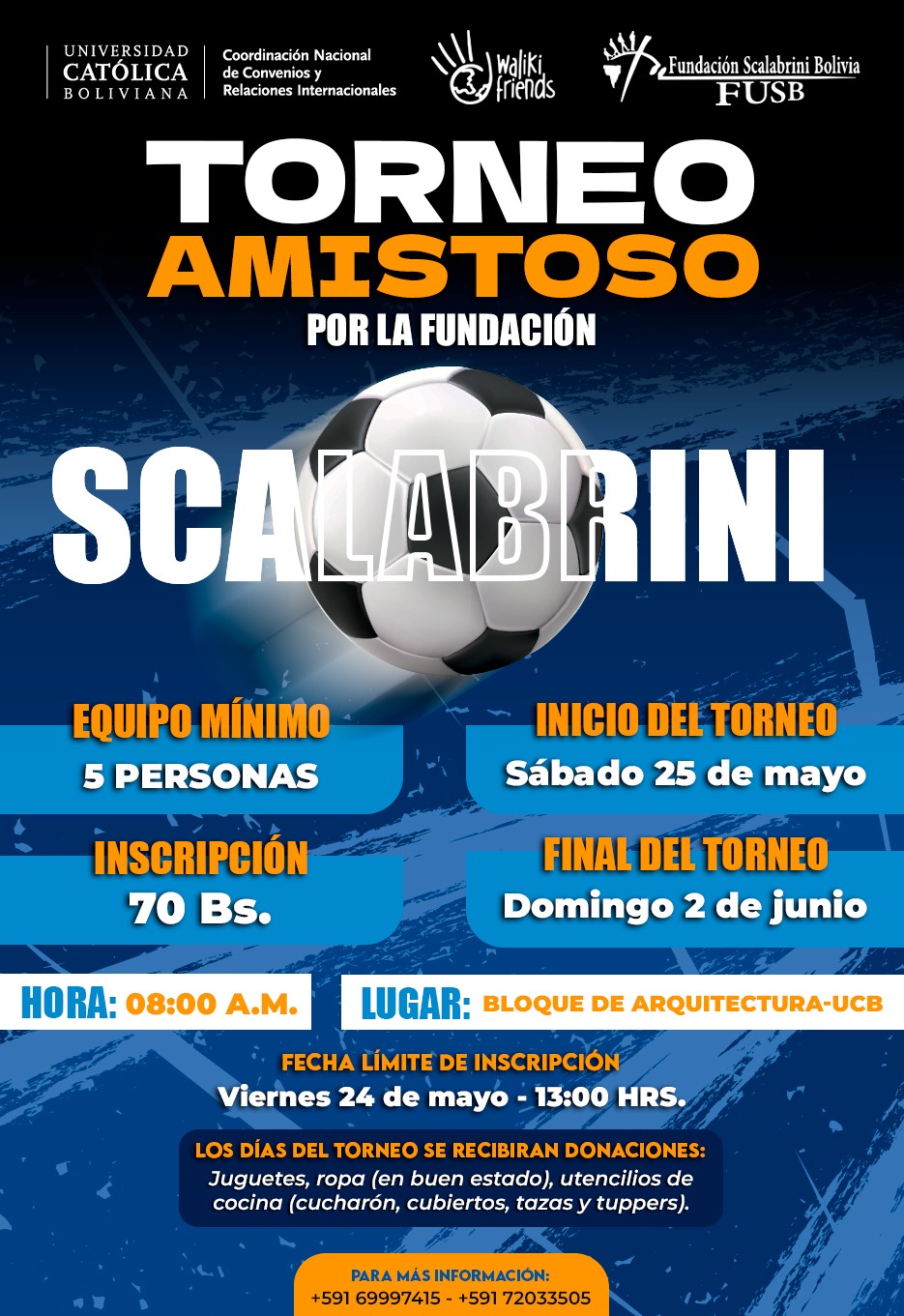 La red de estudiantes Waliki Friends organiza un TORNEO AMISTOSO y recolección de DONACIONES.