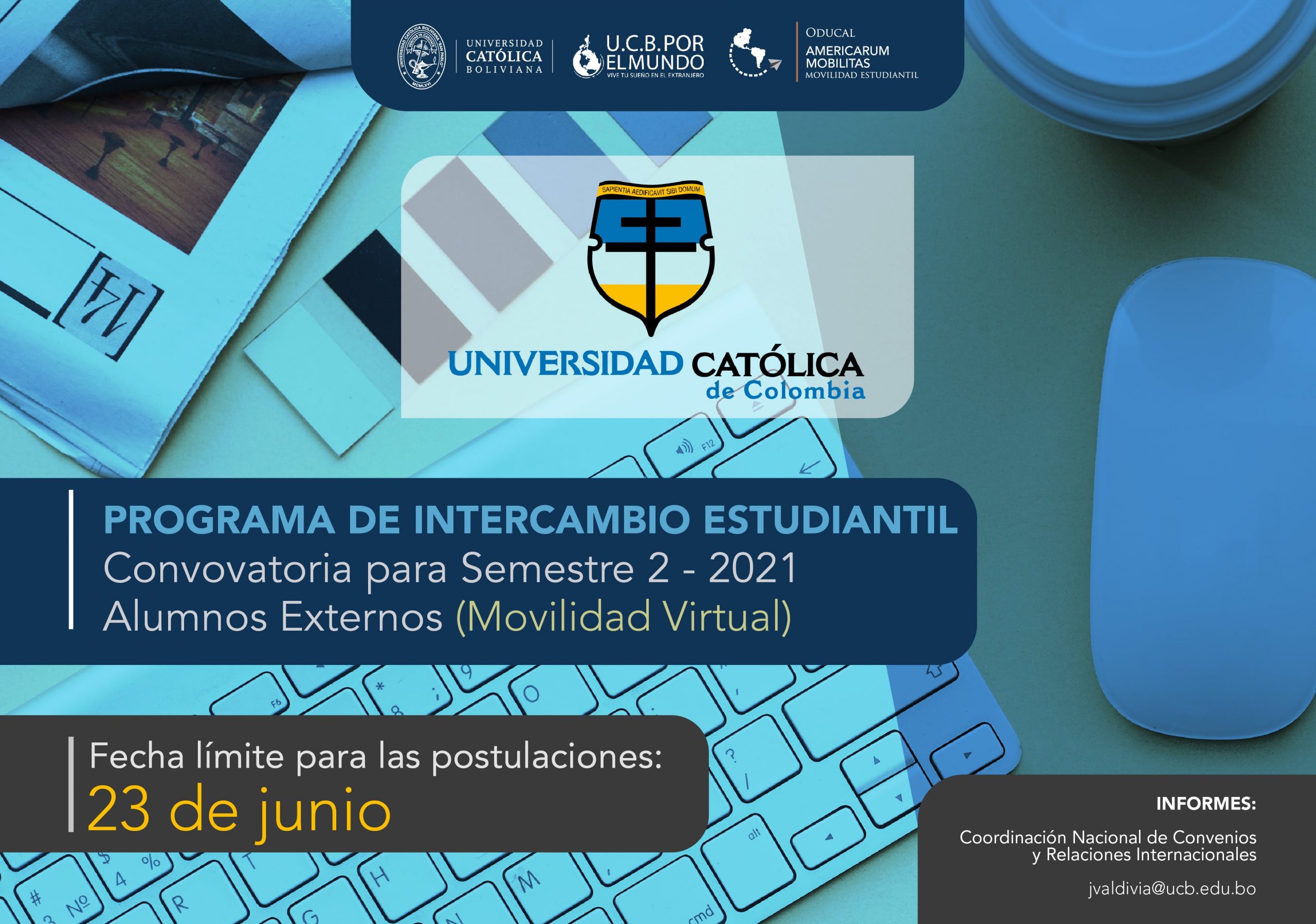 La Universidad Católica de Colombia es parte del Programa de Movilidad Virtual Estudiantil UCB por el Mundo.