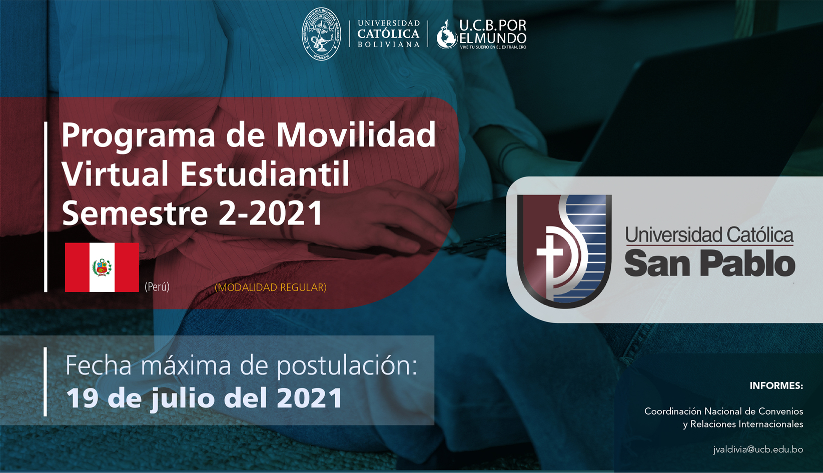 La Universidad Católica San Pablo de Perú es parte del Programa de Movilidad Virtual Estudiantil UCB por el Mundo.