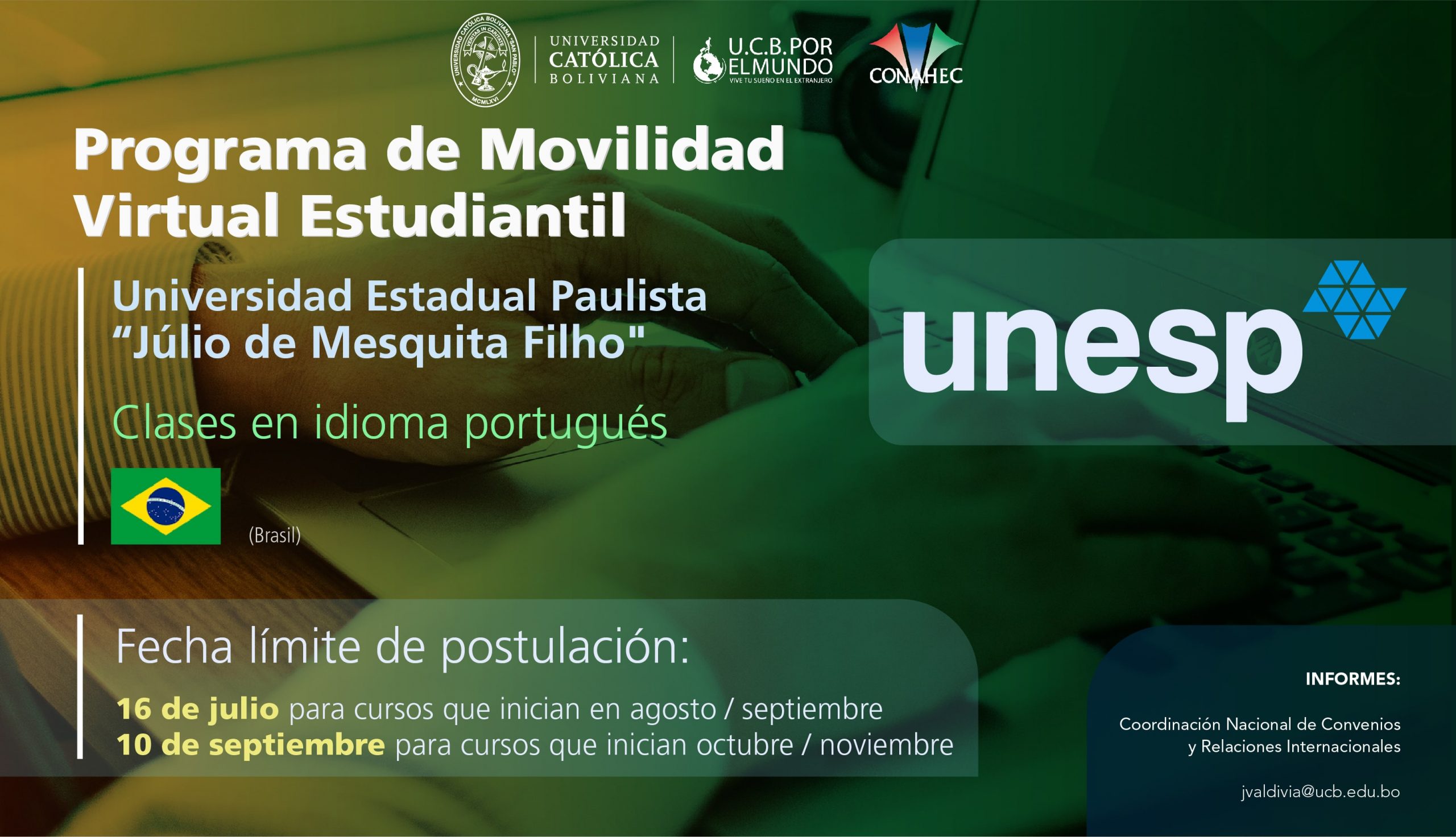 La Universidad Estadual Paulista de Brasil “Julio de Mesquita Filho” es parte del Programa de Movilidad Virtual Estudiantil UCB por el Mundo.