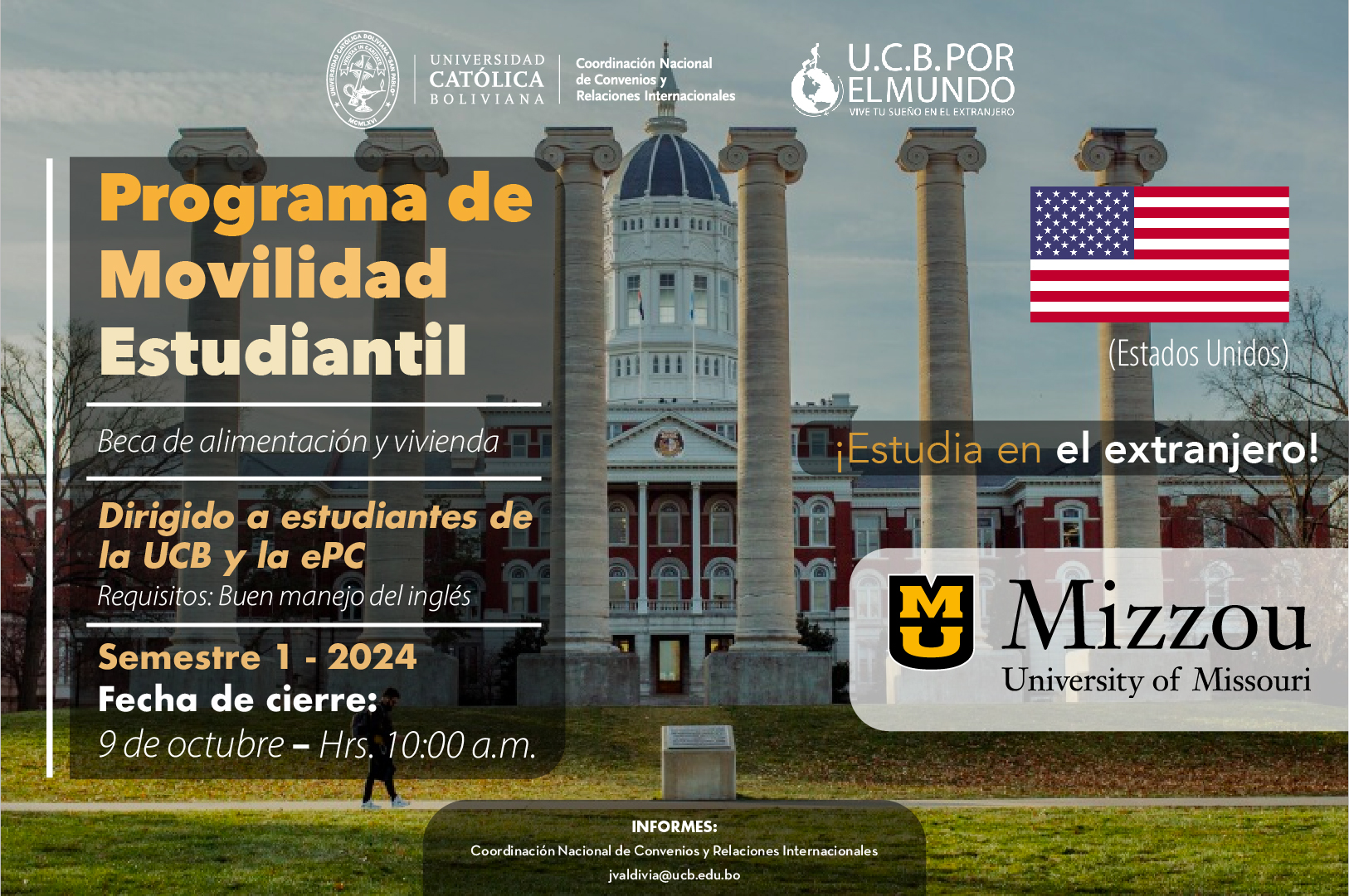 “Programa de beca parcial de movilidad con la Universidad de Missouri en Estados Unidos para el semestre 1-2024”