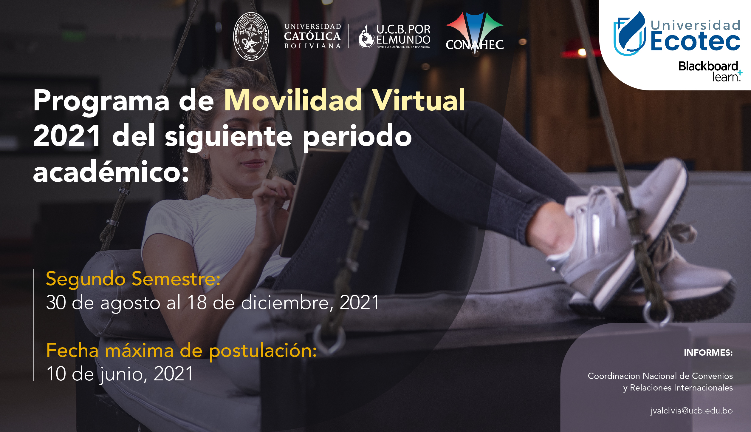 La Universidad ECOTEC es parte del Programa de Movilidad Virtual Estudiantil UCB por el Mundo.