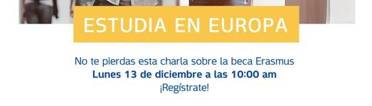 Acompáñanos en nuestro webinar el día lunes 13 de diciembre y descubre experiencias, información y requisitos para ser parte de la Beca Erasmus.