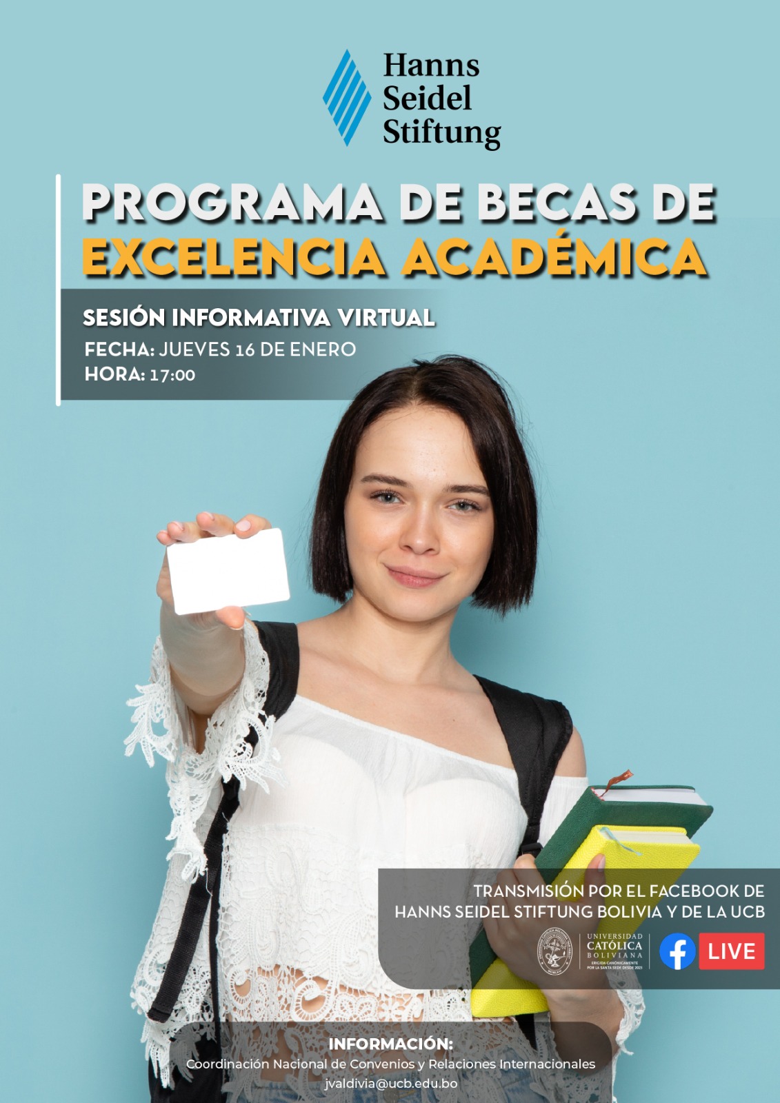¡La Fundación Hanns Seidel y la Universidad Católica Boliviana (UCB) te invitan a participar en la sesión informativa virtual del Programa de Becas de Excelencia Académica! 🌟📚