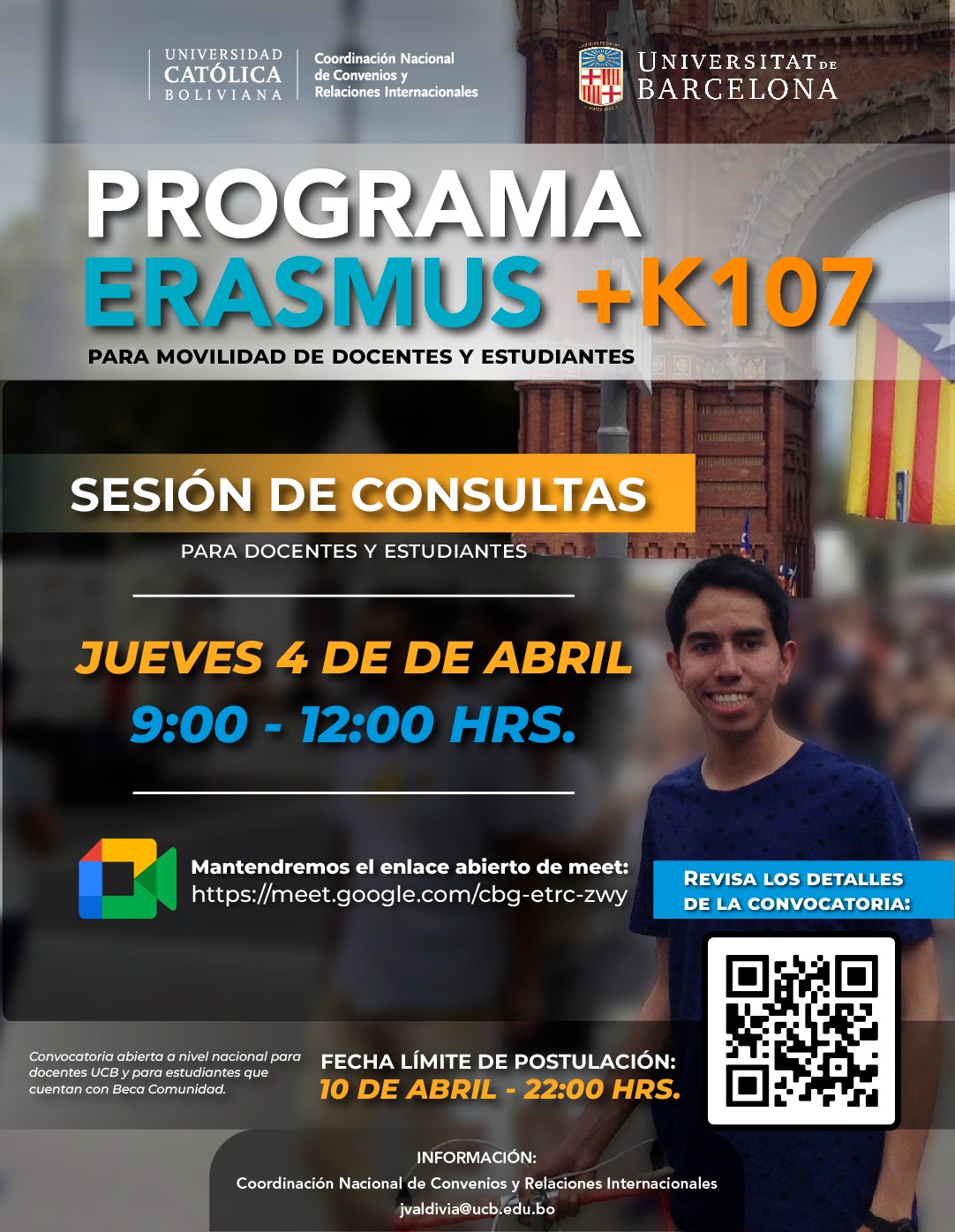 ¡Ya está abierta la convocatoria para el programa ERASMUS+ K107 con la Universidad de Barcelona de España!